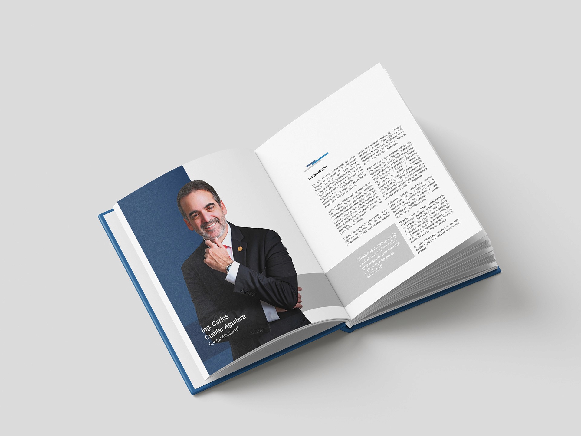 Diseñé la memoria institucional de los 25 años de la universidad, incluyendo maquetación, gráficos e imágenes representativas de su historia y logros.